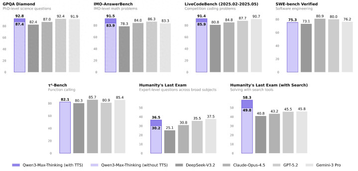 根据阿里披露的信息,此次升级主要针对其旗舰模型Qwen-Max系列。在包括MMLU(大规模多任务语言理解)、MATH(数学问题求解)以及代码生成等核心基准测试中,新版模型的数据表现优于DeepSeek-V3及R1版本。